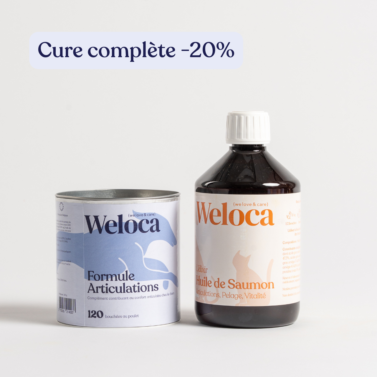 Soulagez ses articulations, soutenez sa mobilité et préservez son confort grâce à notre cure Articulations alliant notre complément articulations (120 bouchées) et notre huile de saumon (500 ml).