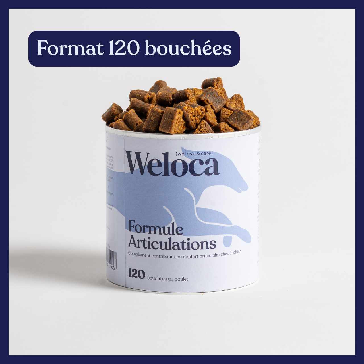 Nos bouchées, très concentrées, sont de petites tailles pour éviter la prise de poids pendant la cure, car nous savons que surpoids, obésité et articulations ne font pas bon ménage !
